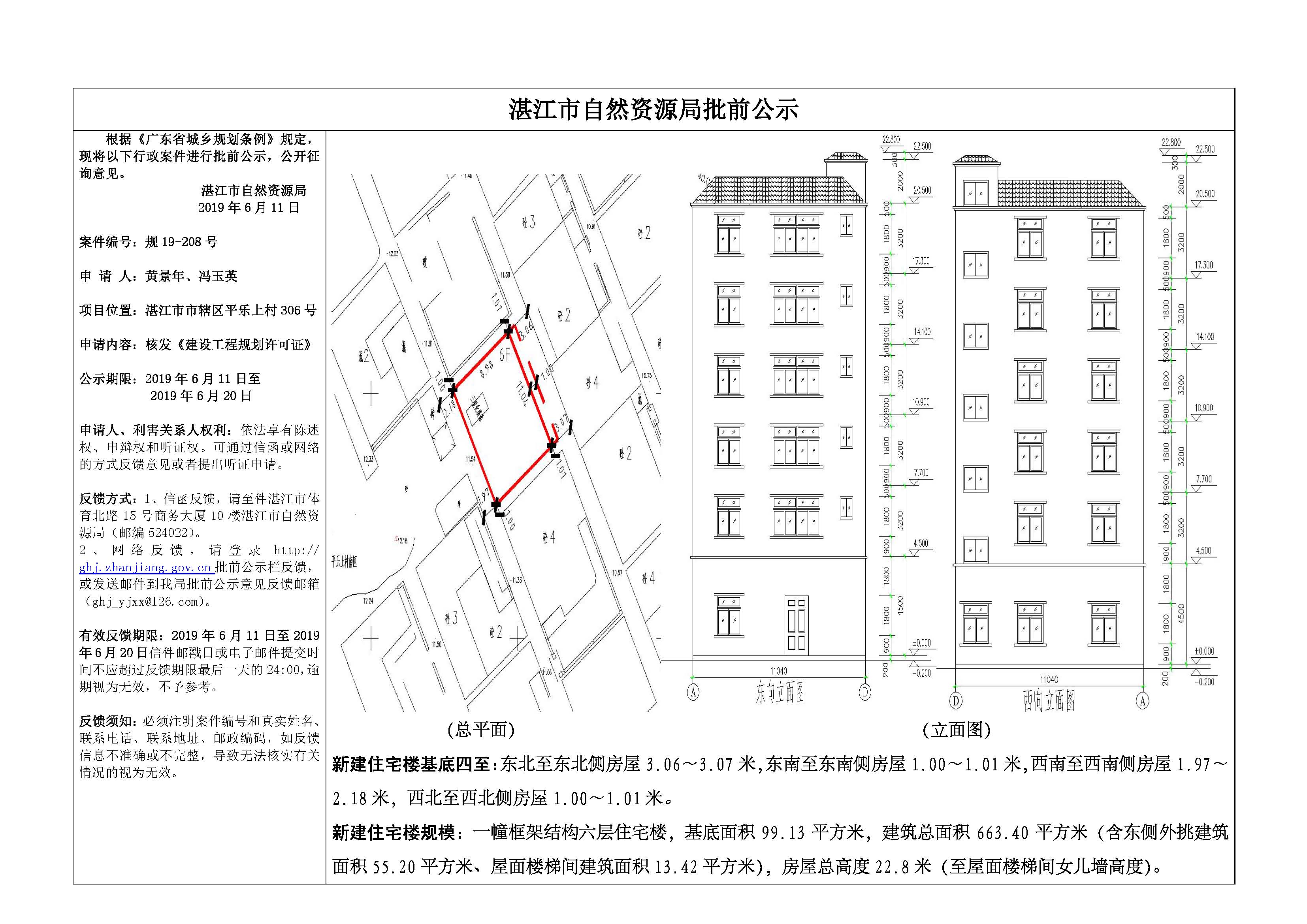 (黄景年、冯玉英)核发《建设工程规划许可证》批前公示