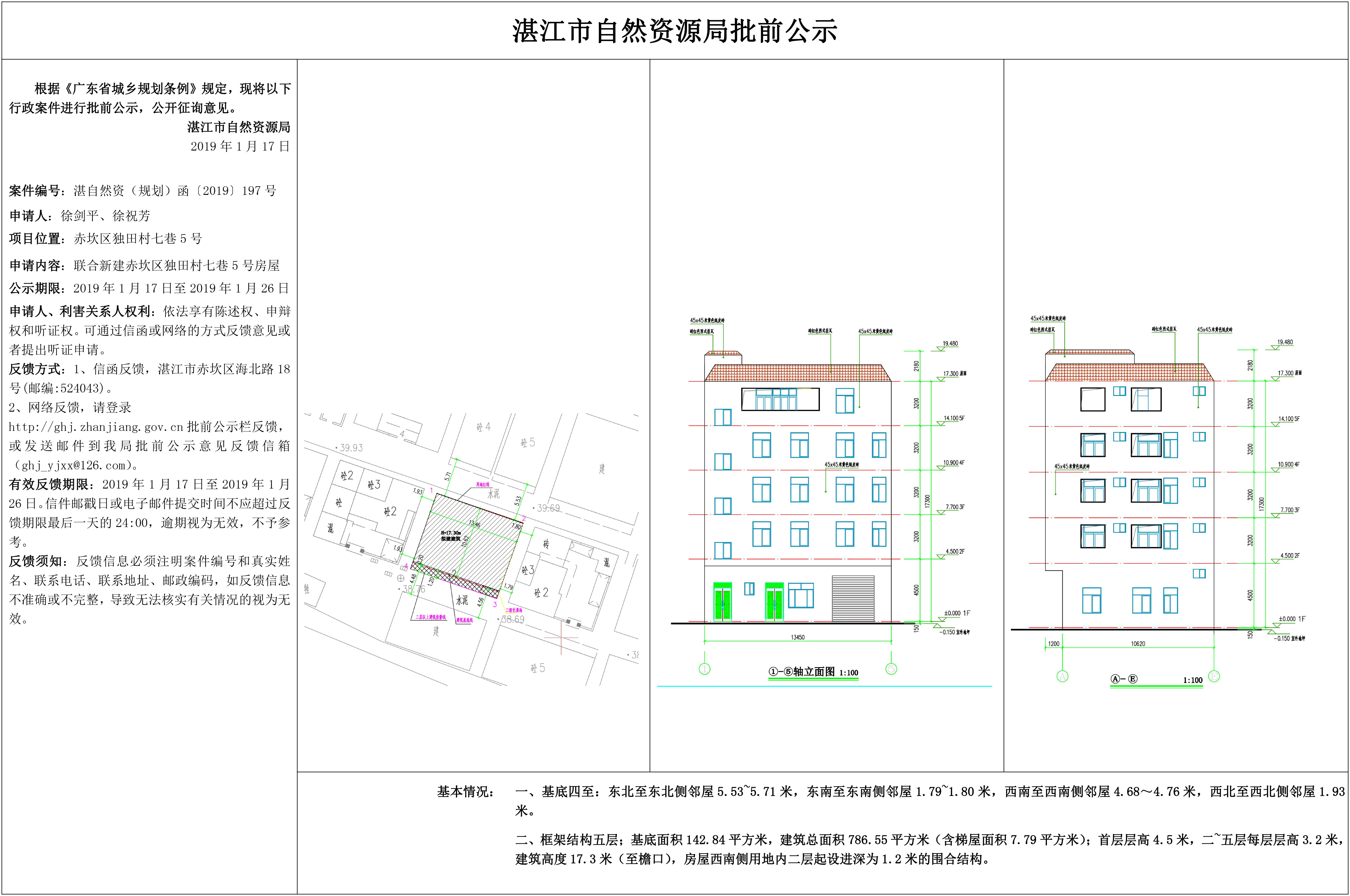 (徐剑平、徐祝芳)联合新建赤坎区独田村七巷5号房屋批前公示