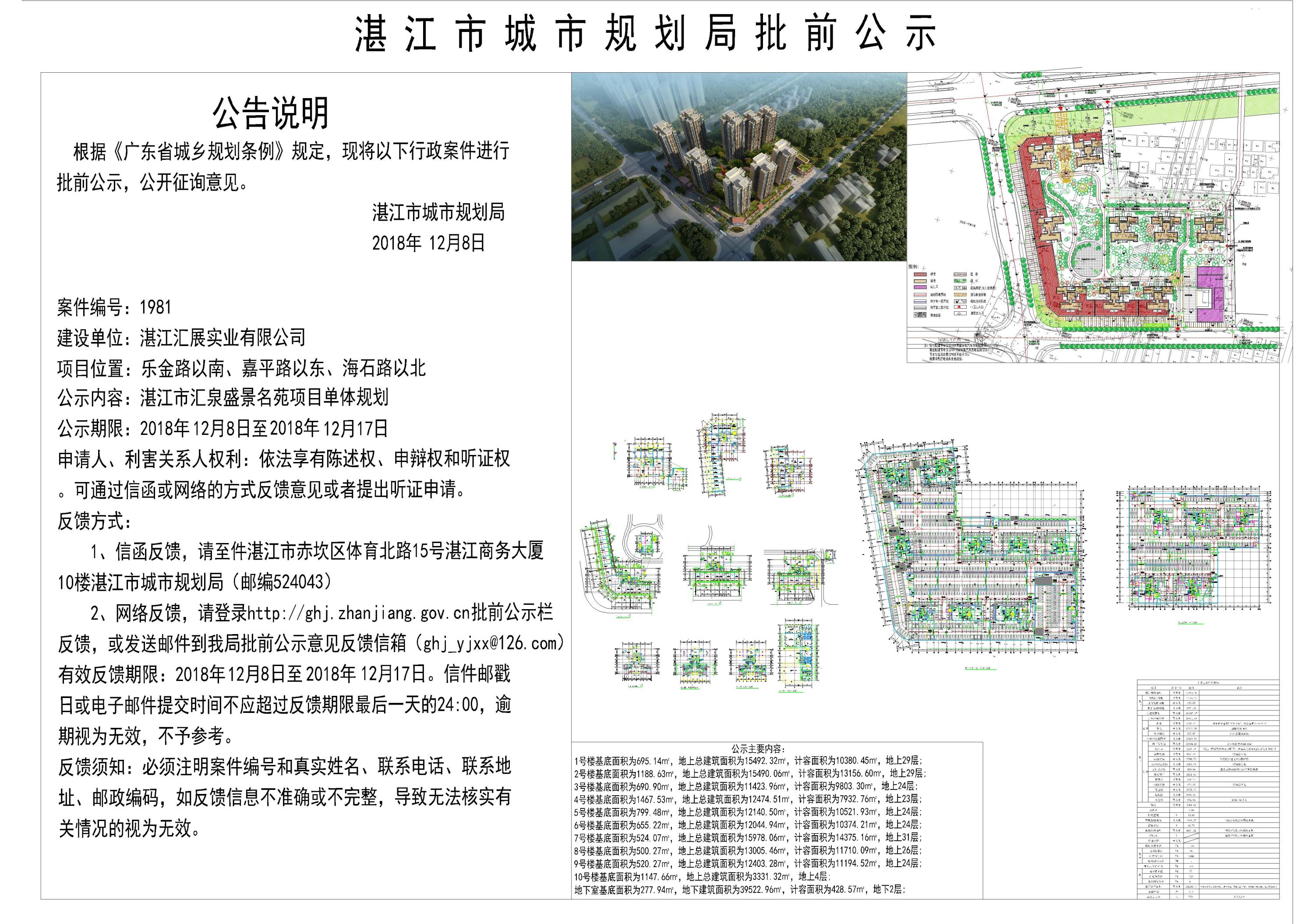 双赢彩票(中国)开奖记录官网 汇泉盛景名苑项目单体规划批前公示