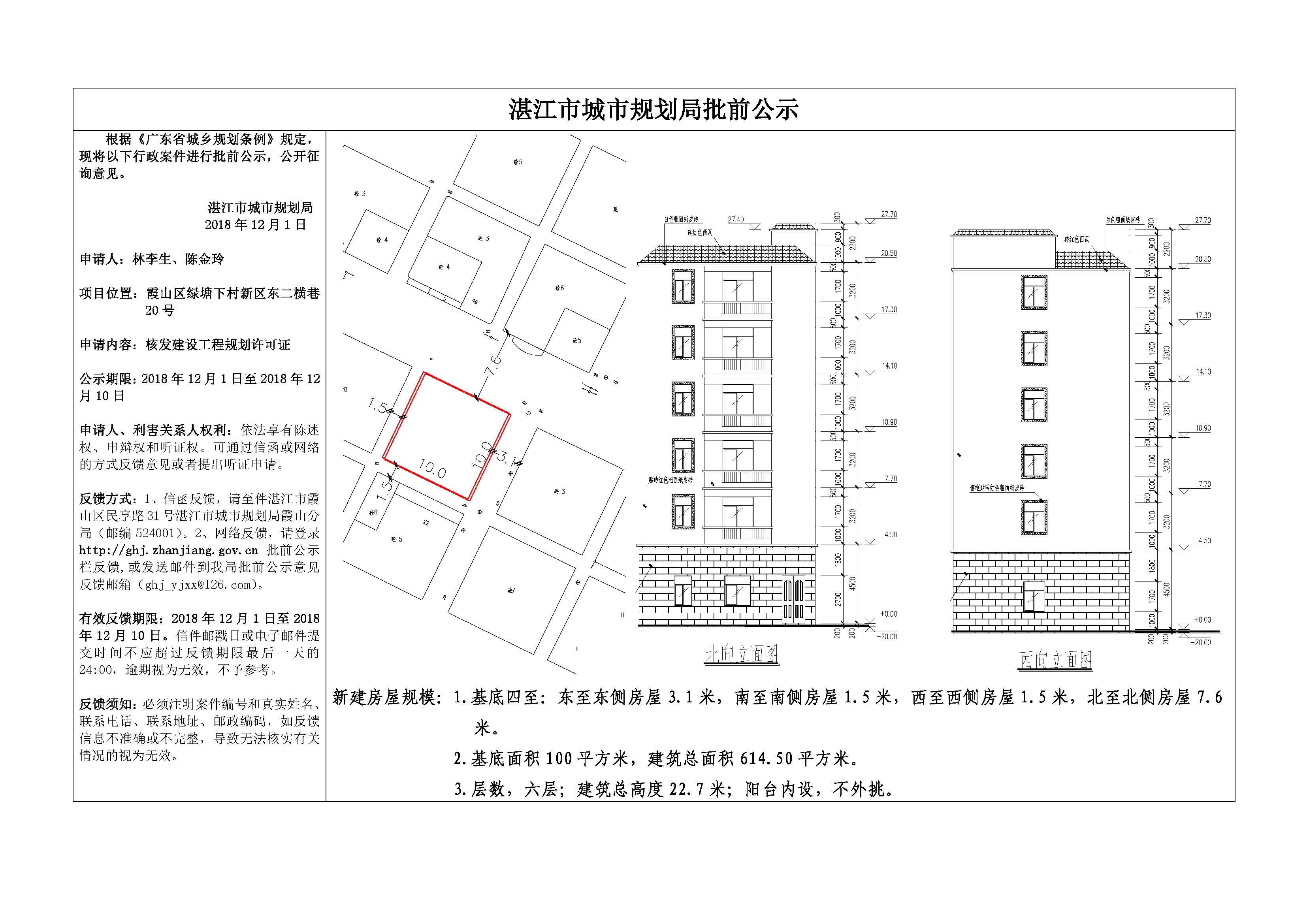 (林李生、陈金玲)核发建设工程规划许可证批前公示(绿塘下村新区东二横巷20号)