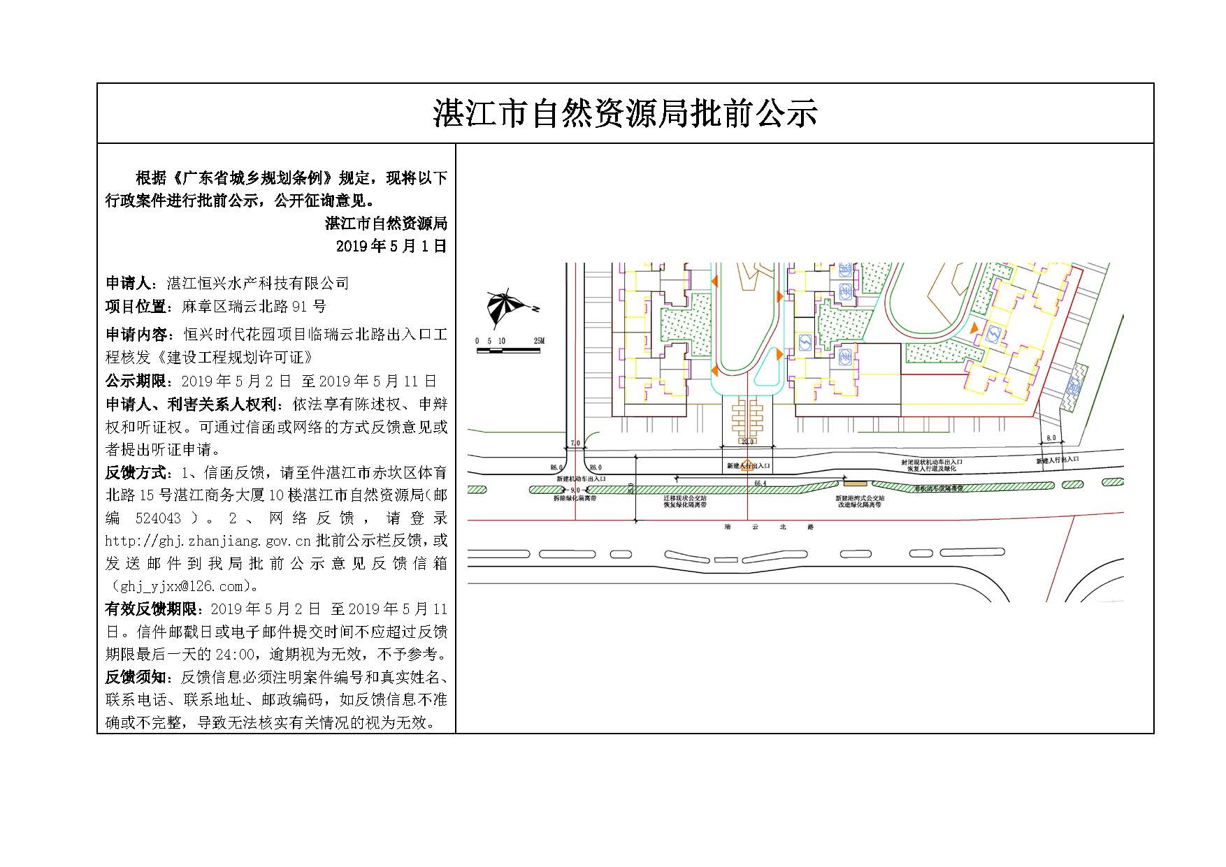 恒兴时代花园项目临瑞云北路出入口工程核发《建设工程规划许可证》批前公示