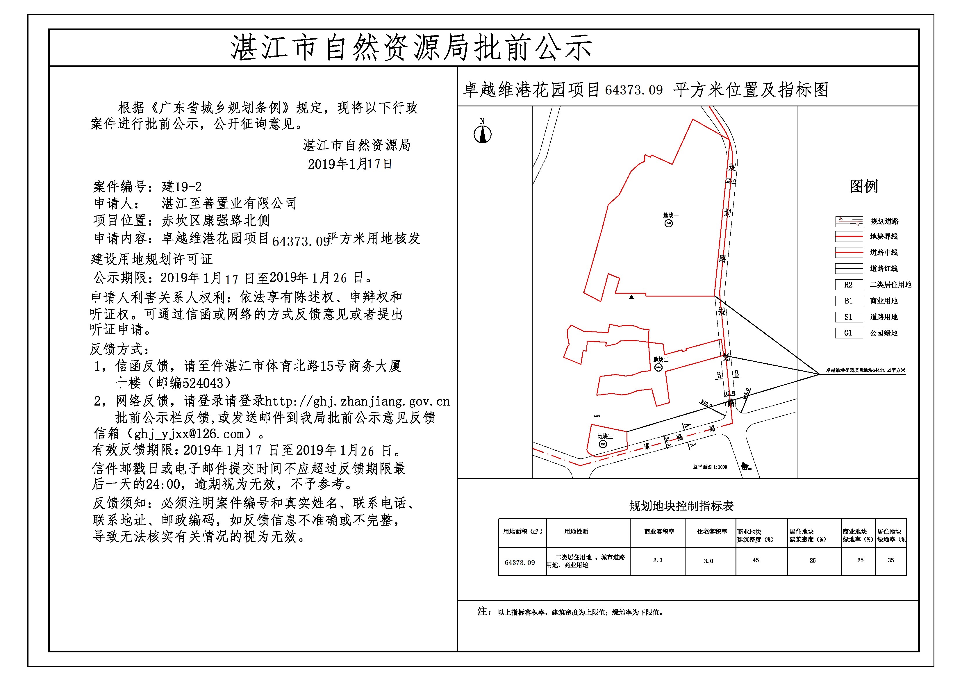 卓越维港花园项目64373.09平方米用地核发建设用地规划许可证批前公示