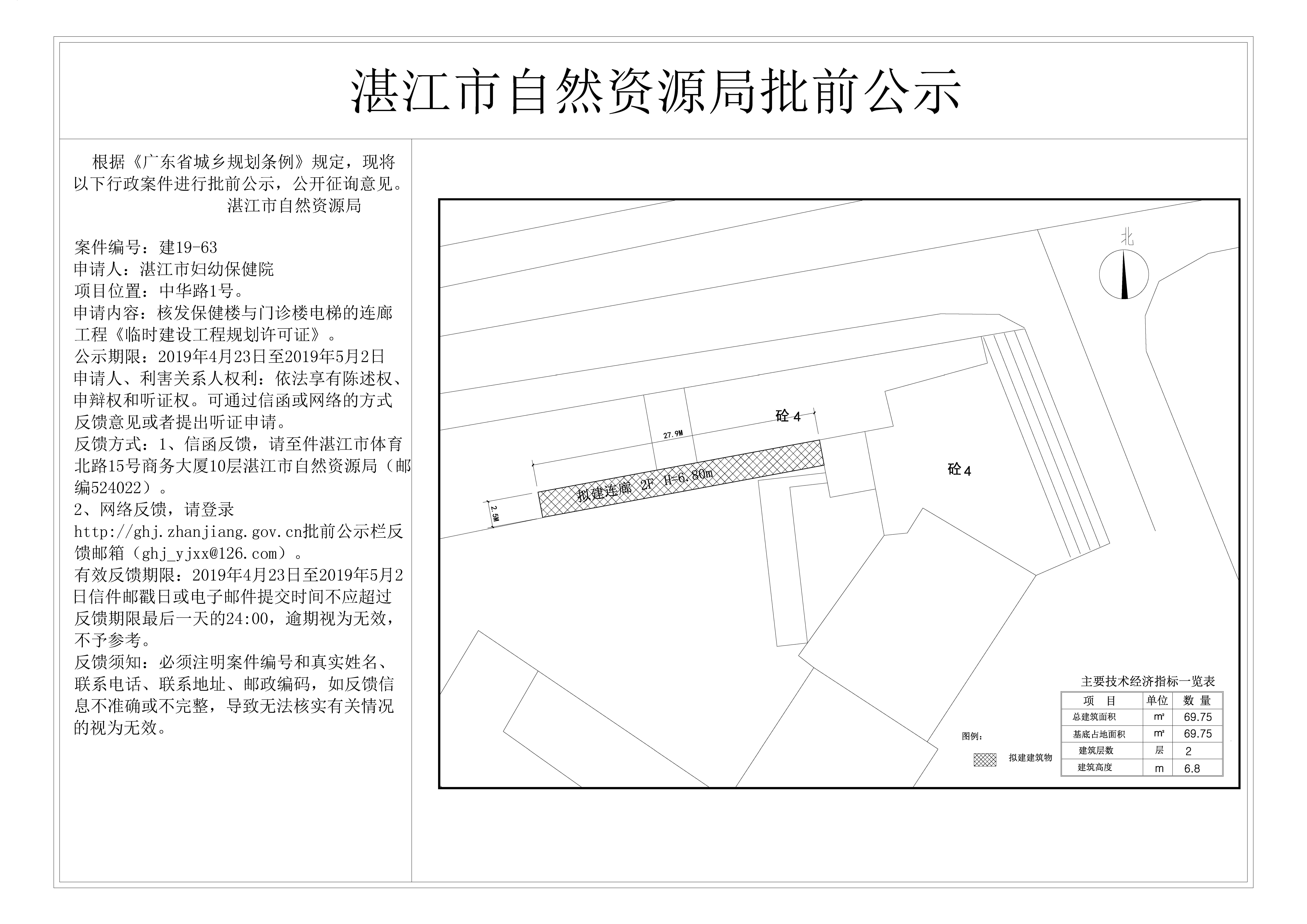 核发保健楼与门诊楼电梯的连廊工程《临时建设工程规划许可证》批前公示