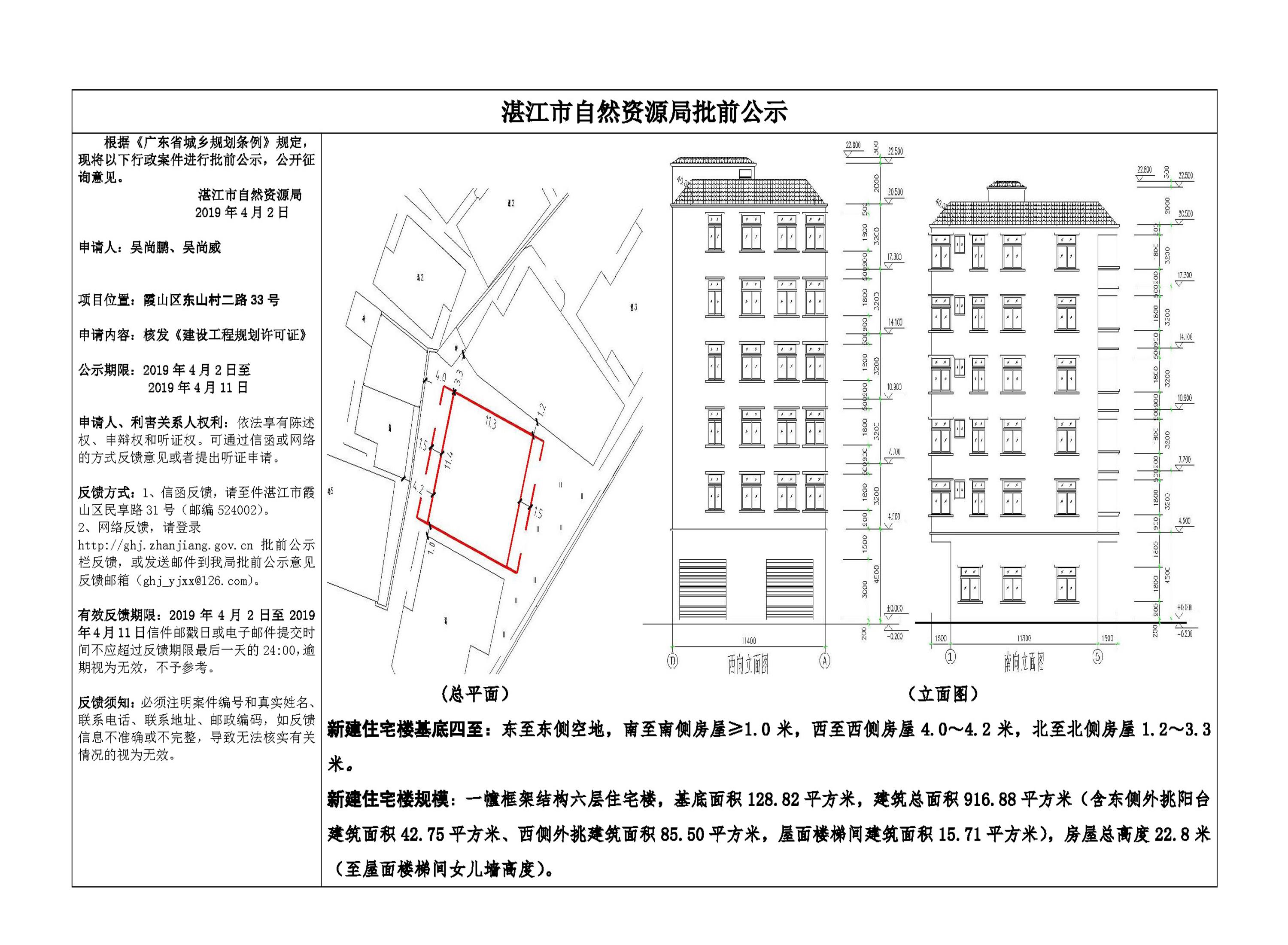 (吴尚鹏、吴尚威)核发《建设工程规划许可证》批前公示
