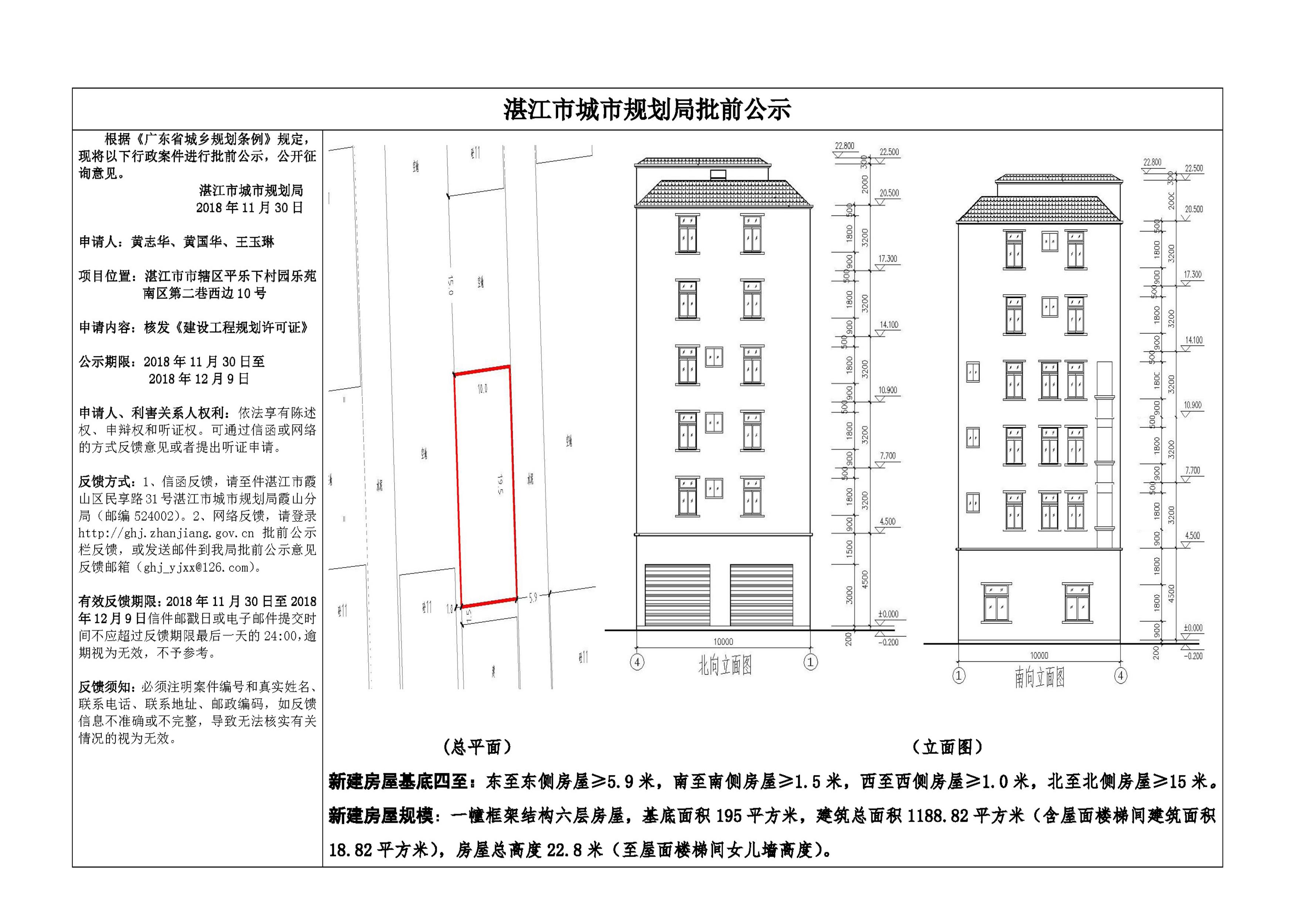 (黄志华、黄国华、王玉琳)核发《建设工程规划许可证》批前公示