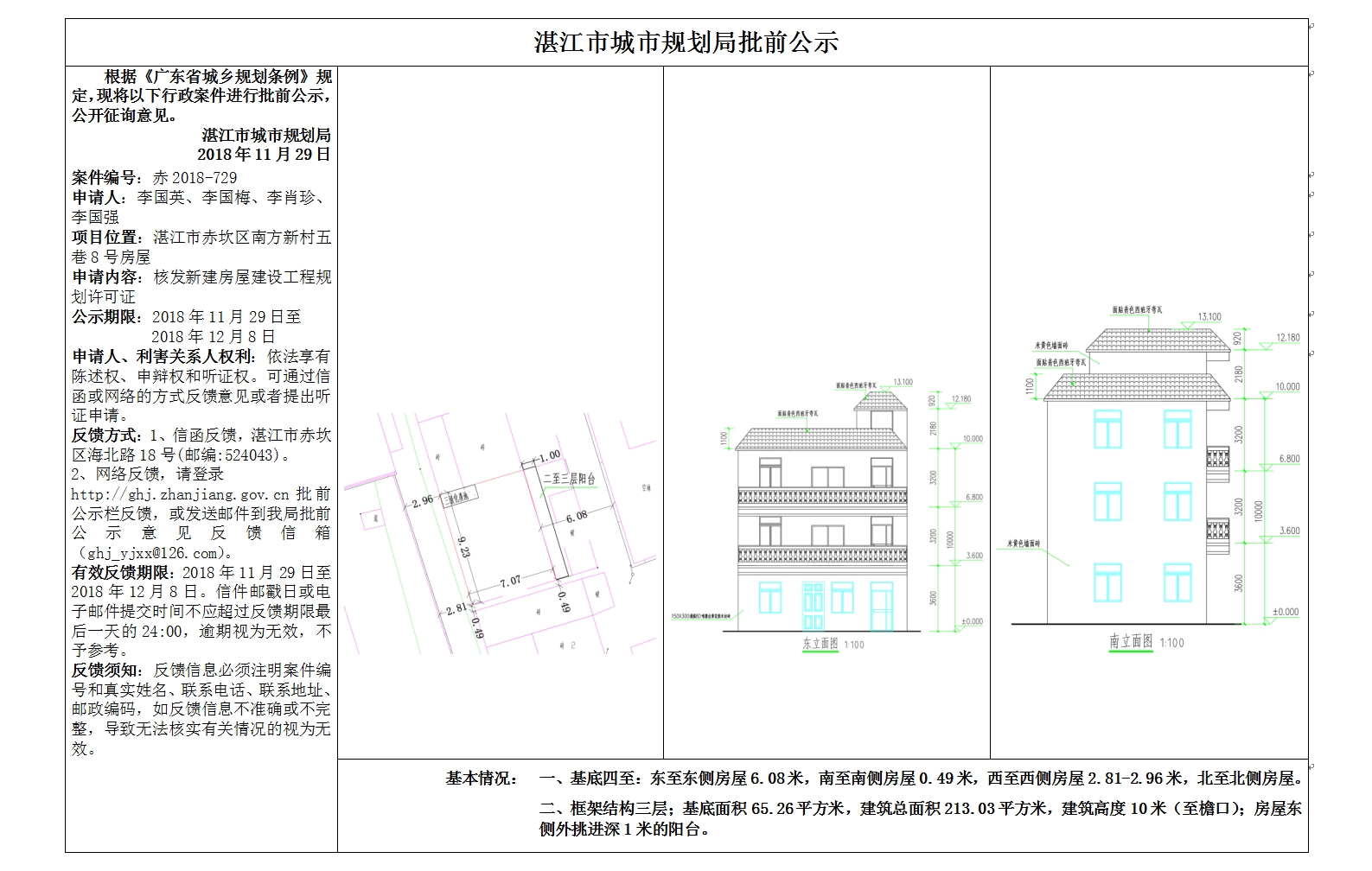 (李国英、李国梅、李肖珍)核发新建房屋建设工程规划许可证批前公示