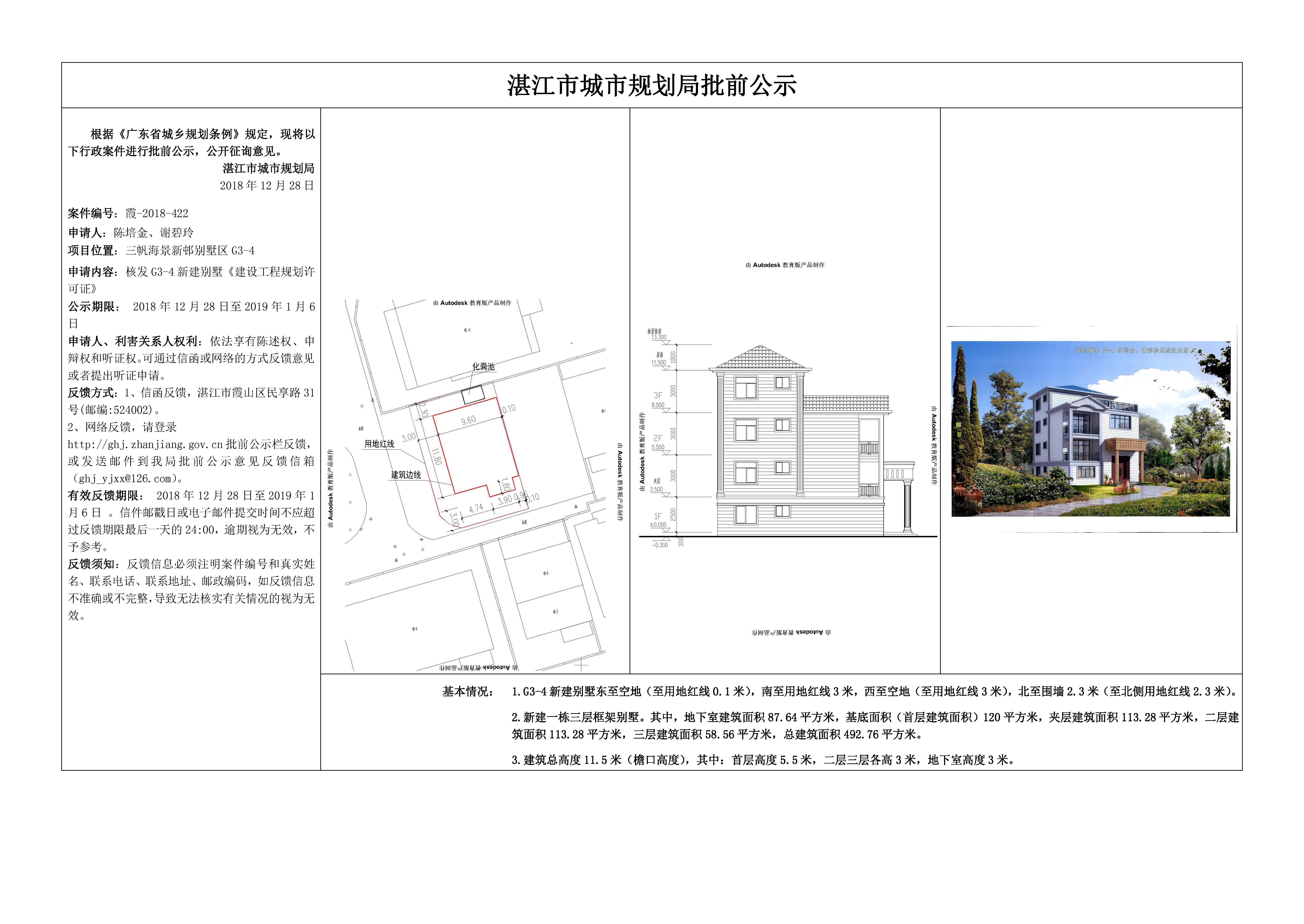 (陈培金、谢碧玲)核发G3-4新建别墅《建设工程规划许可证》批前公示